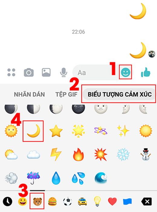 Step 2: Engage in any conversation with your friends then select the Emoji icon -> Choose the moon icon and send it.