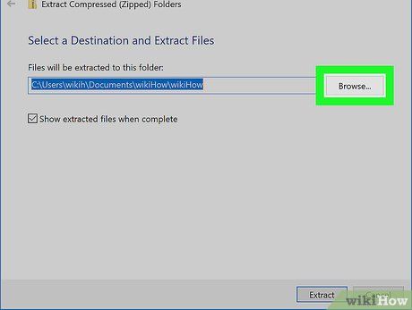 Choose a destination folder for the unzipped files. If you wish to extract the files to a different location other than the current folder housing the ZIP file, follow these steps: