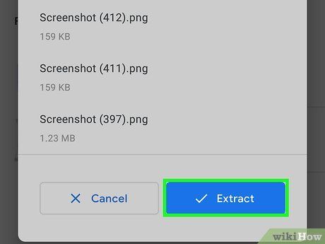 Tap on Extract. This action will extract the files from the compressed ZIP file and display a preview.