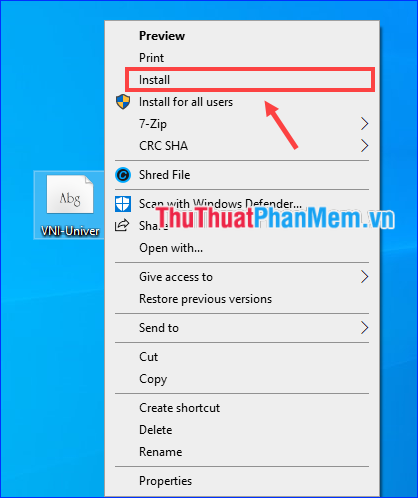 Step 3: Right-click on the downloaded font file and select Install to install the font.