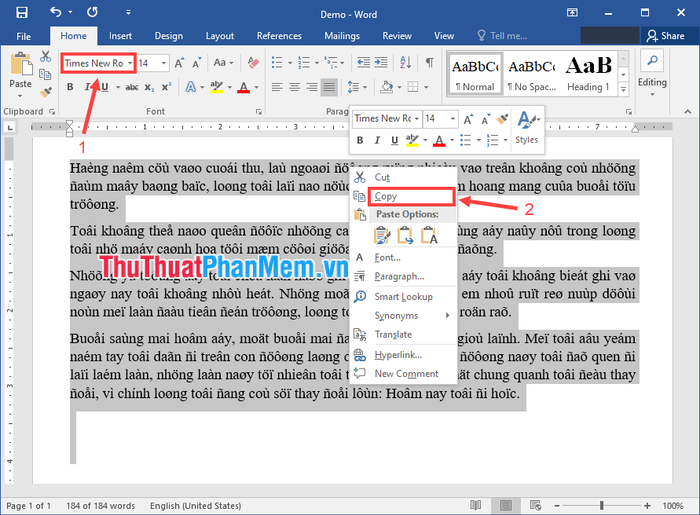 Step 2: Press the Ctrl + A key combination to select the entire text, switch to the new font you want, then copy it (you can also press the Ctrl + C key combination).