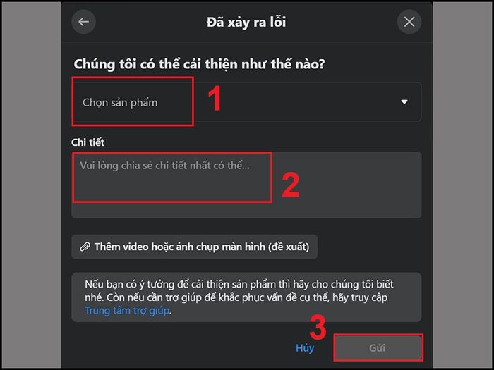 Select the type of issue to report in the Select Product box > Specify the details (can attach images or videos) > Send.