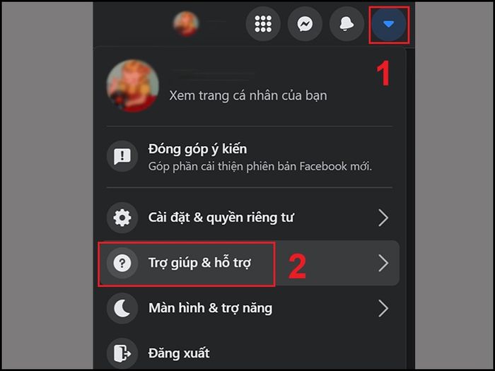 On computer: Go to Facebook homepage > Click the down arrow at the top right corner > Select Help & Support.