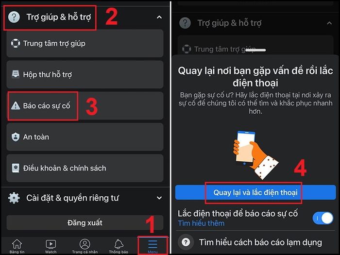 On mobile: Go to Facebook homepage > Select Menu > Choose Help & Support > Press Report Issue > Return and shake your phone.
