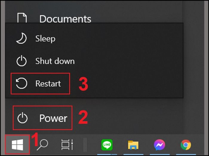 To restart your computer, users press the Windows icon in the bottom left corner of the screen > Select Power > Restart.