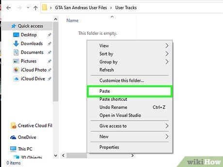 Transfer your music files. Open the “User Tracks” folder by double-clicking it. Right-click anywhere inside the folder, then choose “Paste” from the menu to transfer the music files you previously selected.