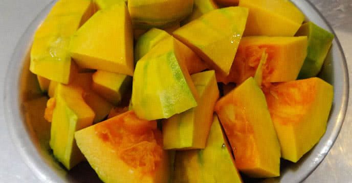 Step 1: Peel and deseed the red pumpkin, then wash thoroughly and cut into small pieces. Clean and dice the onion.