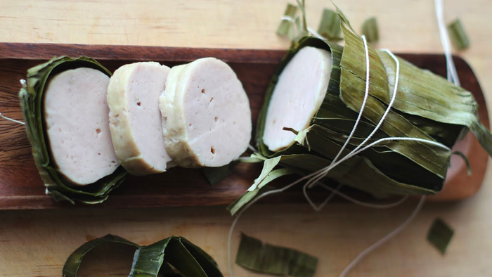 Once the pork sausage is cooked, remove it from the steamer. Since the sausage is still hot, it won't have the desired chewiness yet. You should wait for it to cool completely before slicing. This method of making pork sausage yields a wonderfully chewy and crispy result. The rich and flavorful aroma of the sausage combined with a hint of pickled vegetables creates a warm and delicious Tet meal.