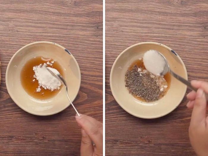 While waiting for the meat to chill before the final grind, prepare the seasoning mixture. In a bowl, mix 2 tablespoons of fish sauce and ½ tablespoon each of cornstarch, pepper, sugar, garlic powder, onion powder, and salt until well combined.