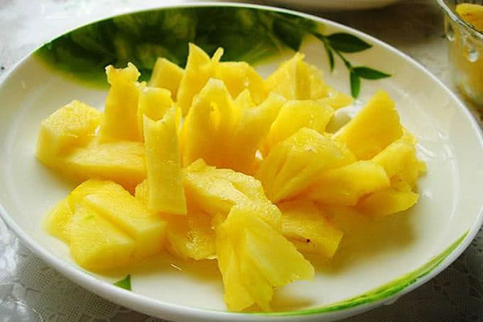 - Peel and core the pineapple, cut into triangular pieces (cut vertically first, then slice). Choose a pineapple that is neither too ripe nor too unripe.