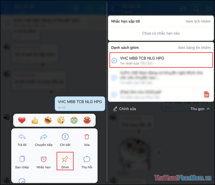 Step 1: Long-press on a message in Zalo to bring up options and tap Pin to pin it.