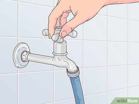 Turn on the water supply. Once you've attached the garden hose, head to the faucet and turn on the water. Refer to your manual for any specific water pressure recommendations, typically around half pressure.