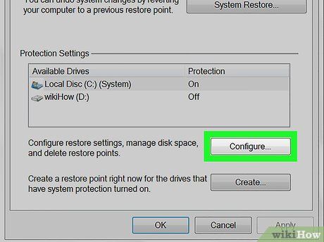 Click on the 'Configure' button, then choose 'Turn off system protection' and click 'Apply.'