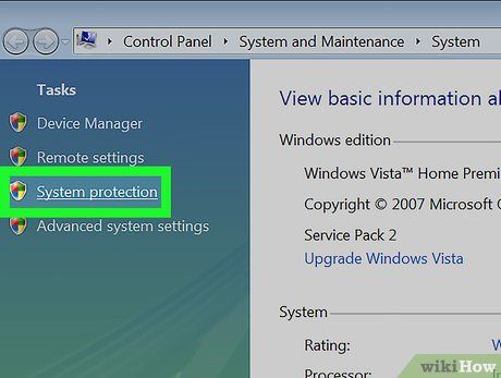 Navigate to the 'System protection' link on the left side of the window.