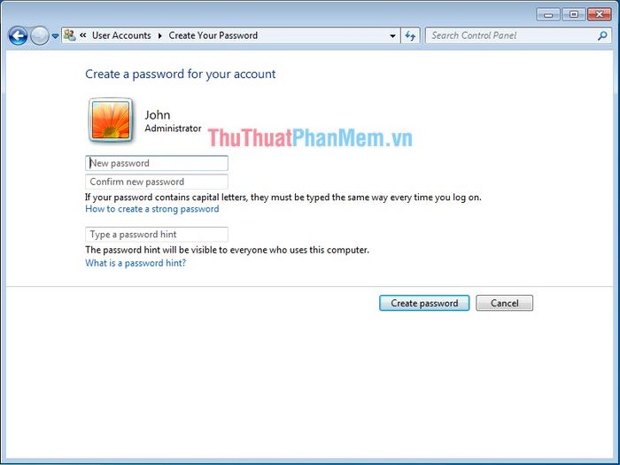 - Type a password hint: Provide a hint for your password (if necessary). This hint will appear if you enter the wrong password multiple times, helping you recall what you set.