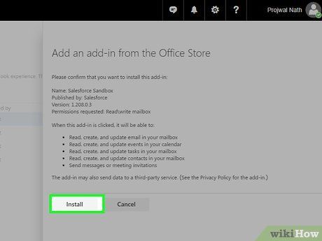 Tap Install. You'll find it at the bottom of the installation window in the right panel. The Salesforce add-in will begin installation. Once it's complete, a confirmation message will appear.
