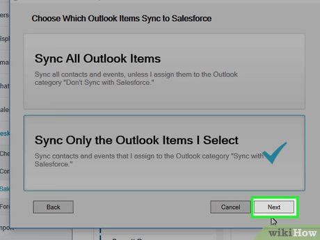 Proceed to the Next. You'll be presented with a screen detailing the synchronization options between Salesforce and Outlook.