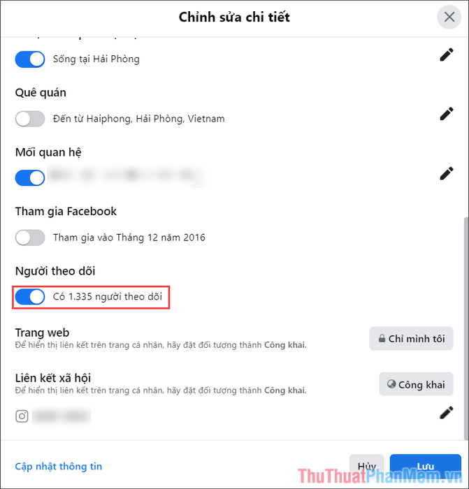 Step 3: After successfully enabling follow mode on Facebook, you need to activate the feature to display the number of followers on your profile.