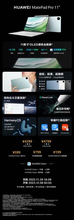 In terms of specifications, Huawei MatePad Pro 11 (2024) utilizes the Kirin 9000s processor paired with 12GB of RAM and 256GB/512GB of internal storage. The device features a cooling system to keep it cool. Upon release, it will come pre-installed with HarmonyOS 4.