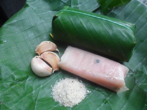 The meat for nem is lean, minced or finely ground, seasoned with spices and rock sugar for a balanced flavor. Boiled pig skin, drained and finely sliced, is added to the meat mixture. After preparing the ingredients, the maker uses leaves to wrap the nem. The leaves must be clean and dry before use.