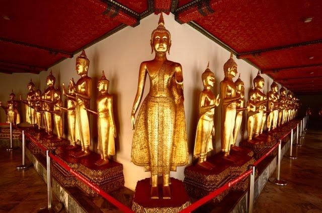 Still featuring gradually smaller tower-like structures as you ascend, but not made of gold like other typical Thai temples, it exudes a sense of pure white, resembling a 'miniature Tibet within Bangkok.' To enter Wat Prayoon Temple, you must pass through a vibrant red iron fence, 1.5m high, adorned with images of ancient weapons like swords, bows, axes, preserving the solemnity and architectural value of this structure.