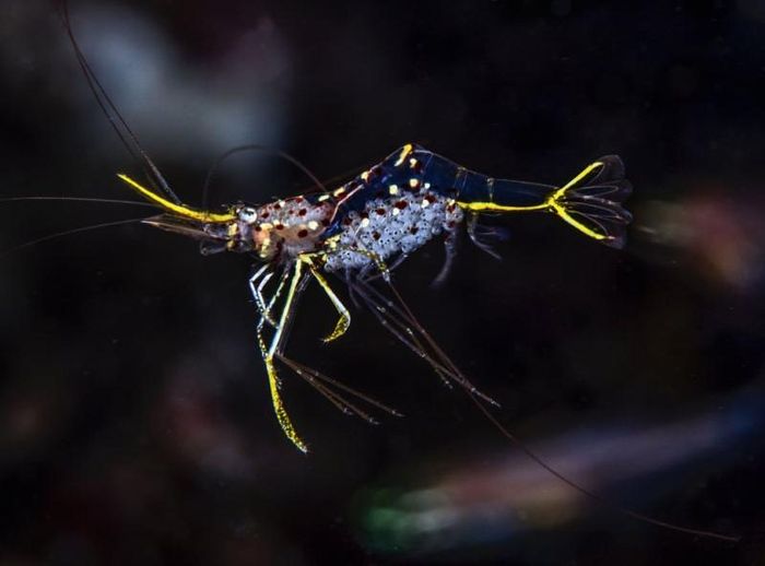 Two pairs of antennae also protrude from the head of the carapace. One of these pairs is very long, possibly twice the length of the shrimp's body, and the other pair is short. The antennae serve as sensory organs for touch, smell, and taste. The long antennae help shrimp navigate their environment, while the short antennae assess the suitability of food or prey.