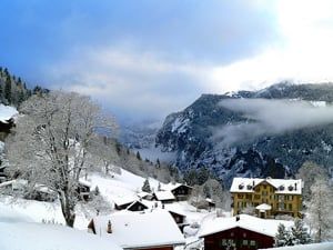 In winter, visitors will find a picturesque village with log houses surrounded by snow-covered mountain peaks. Local residents are diligently preserving the authentic essence of Swiss culture in this charming village.