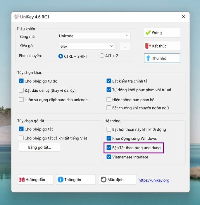 To address this issue, the author employed a rather intricate feature: using Windows Task Scheduler. However, sometimes it's not reliable. Fortunately, just yesterday on September 15, 2023, author Pham Kim Long released version 4.6 RC1 with an exceptional feature: remembering Unikey's state in each application. You just need to