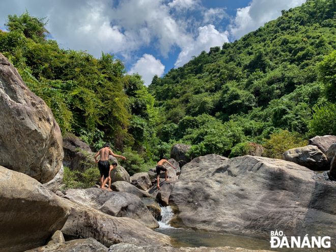To travel to Khe Ram Da Nang, follow Ngô Xuân Thu Street to Hòa Bắc Commune, cross the Khe Ram Bridge, and turn right 500m to reach Suối Mơ. Visitors can park their vehicles at local homes and start exploring the entire Khe Ram area.