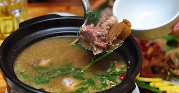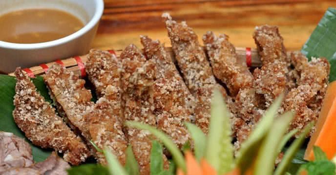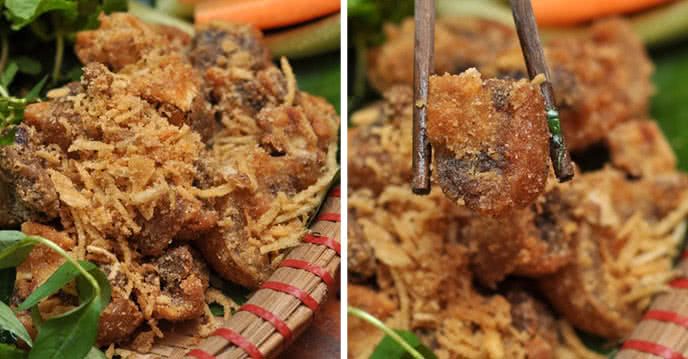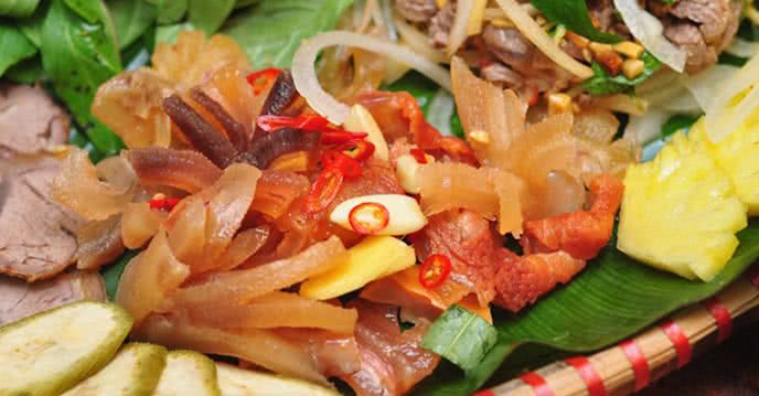Wrap a piece of meat with fresh herbs, dip it generously in Bần soy sauce, and savor it with a slice of pineapple or green banana – your drinking session will be over in no time!