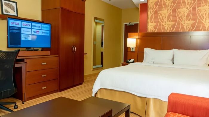 Unwind in Style at Courtyard by Marriott. Each Room is a Sanctuary of Serenity, Offering Spacious Comfort and Modern Elegance for the Ultimate Relaxation Experience.