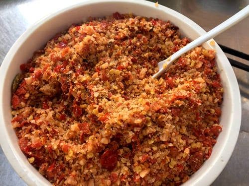 Due to their preference for less fish sauce, the Khmer people rely heavily on chili salt as a dipping sauce for many dishes, including Bun Xiem Lo. When the steaming bowl of Bun Xiem Lo is served, diners can add a pinch of chili salt or use it as a dipping sauce for boiled pork skin or fish heads.