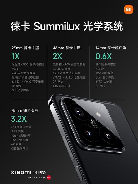 Xiaomi 14 Pro's photography specifications. Source: Xiaomi.This year, Xiaomi 14 Pro has significantly improved its internal camera system with the new Summilux lens replacing the highly successful Summicron from the previous generation. With this change, the device can now deliver higher-quality photos in terms of detail, color, contrast, etc. Furthermore, the focusing ability has been greatly improved so you won't miss any precious moments in life.