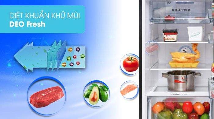 DEO Fresh technology uses silver ion Ag+ ions to eliminate odors and bacteria, ensuring that the air inside the refrigerator is always fresh and clean, maintaining the freshness of your food.