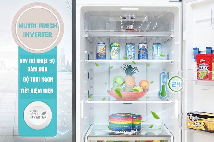 The NutriFresh Inverter system not only maintains stability in Electrolux refrigerators but also extends food preservation time by over 7 days, saving more than 37% in energy consumption. Simultaneously, Fresh Plus utilizes dual independent fan technology, providing the best and most powerful refrigeration capability for the refrigerator. As a result, cold air is evenly distributed throughout the fridge, helping it maintain a stable temperature for food items.