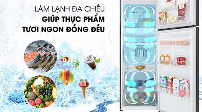 MultiFlow cooling technology ensures uniform air distribution from the compartments of the refrigerator. This ensures even cooling of food, addressing issues of uneven or concentrated cold air affecting food quality.