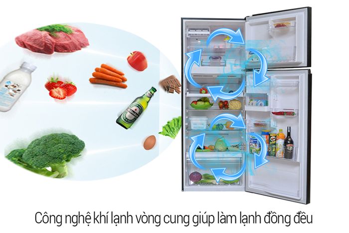 Currently, the curved airflow cooling system is a refrigeration technology applied in Toshiba refrigerators. With this system, the cold air inside Toshiba refrigerators circulates from the back of the fridge (the coldest area) to every nook and cranny within the appliance.