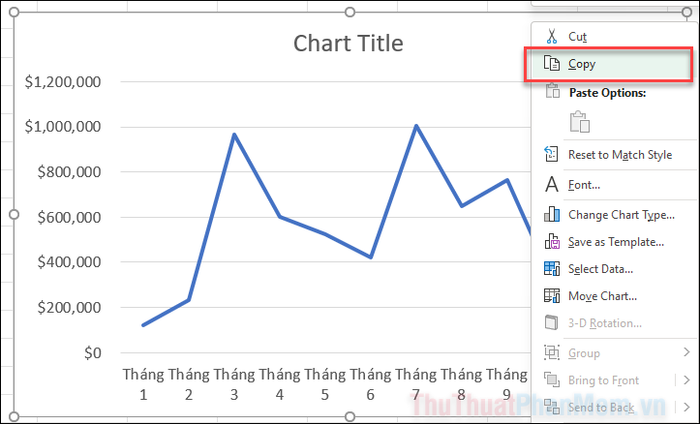 Step 3: Once the chart appears on the worksheet, right-click on it, select Copy (or press Ctrl + C).