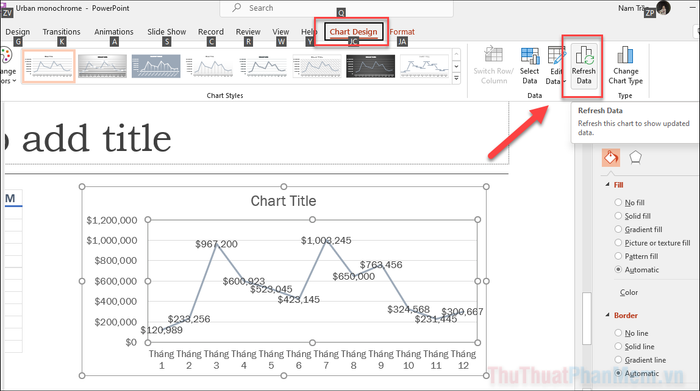 Usually, your changes in the Excel file will be automatically updated in PowerPoint. However, if you find that the changes are not reflected in the PowerPoint chart, you can update them manually.
