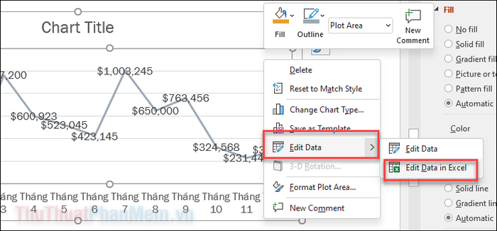 When you want to edit the chart, you must open its original Excel file. Quickly do this by right-clicking on the chart >> selecting Edit Data >> Edit Data In Excel.