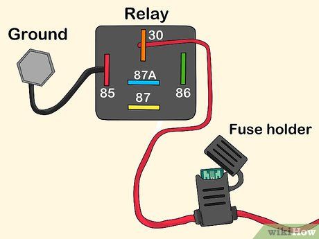 Connect a Wire to an In-line Fuse. Install an in-line fuse holder and connect it to the positive post on the relay. Ensure there's a fuse rated for the spotlight's power requirements to protect against electrical surges.