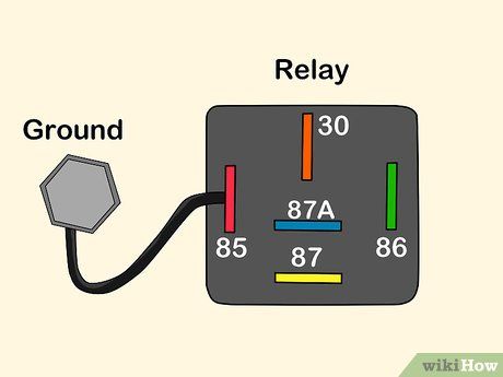 Grounding the Relay. Attach a short length of black wire from the relay to a bolt on the vehicle's body or frame. Strip the wire at the end, loop it around the bolt, and twist it securely before tightening the bolt.