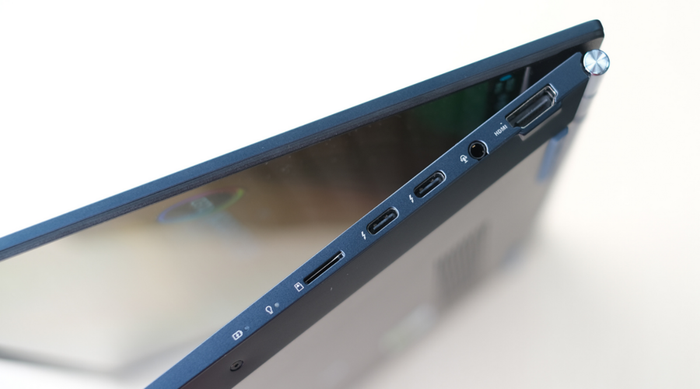 Furthermore, an notable feature of this Asus Gen 13th laptop is its ErgoLift hinge design that opens flat up to 180 degrees, fingerprint sensor on the power button, webcam with Asus 3D Noise Reduction technology, and Asus ErgoSense mouse pad for the best ergonomic experience. The Zenbook 14 OLED also comes with a full range of connectivity ports: HDMI 2.0; USB 3.2 Gen 2 Type-A port; microSD card reader; and audio jack. The laptop has also passed the most rigorous tests to meet the US military MIL-STD-810H standards, ensuring users' confidence in its durability.
