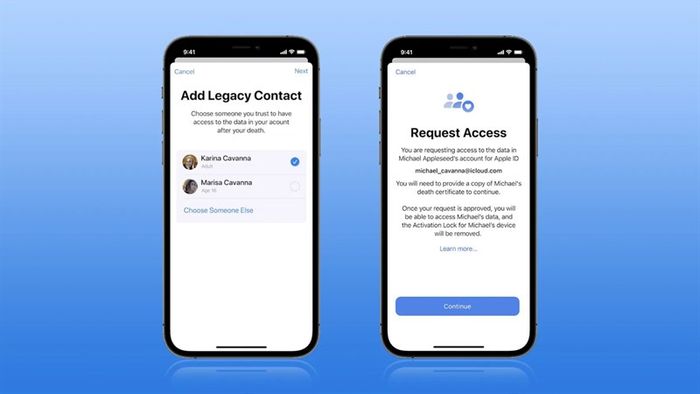 You can find the new Digital Legacy feature in the Settings app > your name at the top > Password and Security > Legacy contact > Add Legacy Contact to select a person to grant access in your contacts. The person granted this access will be called a “Legacy Contact” (Người liên hệ kế thừa).