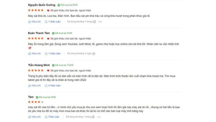 Some customer reviews after purchasing Masstel tablets at The Gioi Di Dong (updated on 12/03/2022)Despite the affordable price, Masstel tablets offer decent quality. The screens are usually large with fairly decent configurations within the price range. These advantages make Masstel tablets worth considering.