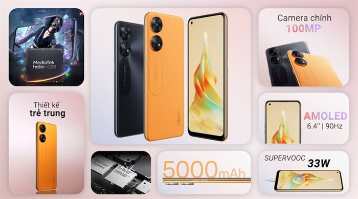 What caught my attention at first sight of the product is its incredibly striking orange color. The orange color of OPPO Reno8 T 4G is quite suitable for all ages, especially for those who are energetic and youthful.