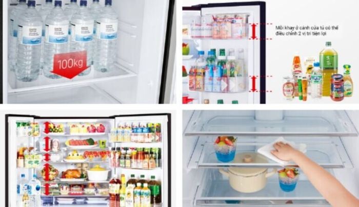 The Mitsubishi MR-LA72ER refrigerator is a side by side fridge belonging to the multidoor 4-door series, featuring a sleek and elegant mirrored design. In this same segment, the company also offers the Mitsubishi MR-LA78ER refrigerator with a capacity of 635 liters, while the Mitsubishi MR-LA72ER only reaches 580 liters. Both models of these 4-door fridges are almost identical in all aspects except for the cooling compartment capacity, size, and price. Both the Mitsubishi MR-LA72ER 580-liter and the Mitsubishi MR-LA78ER 635-liter refrigerators come in 2 color options: black and silver, allowing users to freely choose the color model that suits their interior space.