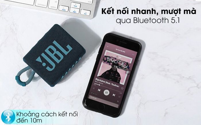 JBL Go 3 is equipped with a mini speaker unit and a passive radiator bass speaker. As a result, the Bass – Treble and Mid ranges are processed clearly and do not overlap like other speaker models. JBL's speaker line is suitable for playing various music genres such as EDM, pop, dance, hip-hop, and more.