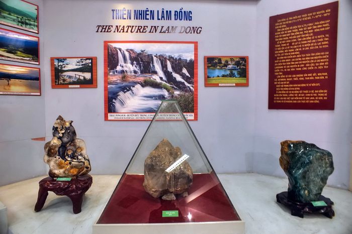 The museum's exhibition showcases Lam Dong's people in nation-building and defending the socialist homeland; Lam Dong's military and civilians in resisting foreign invaders; the unique cultures of indigenous ethnic groups; archaeological discoveries in Lam Dong; past and present Dalat; and Lam Dong's natural beauty.