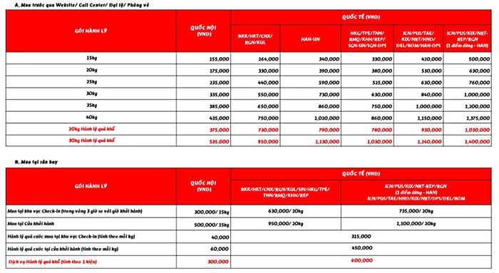 However, the prices for Vietjet international checked baggage may differ from domestic routes, ranging from double to triple the cost. Specifically: